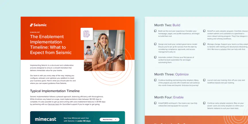 Seismic’s Professional Services team strengthens your enablement strategy so you can achieve your goals faster than ever.